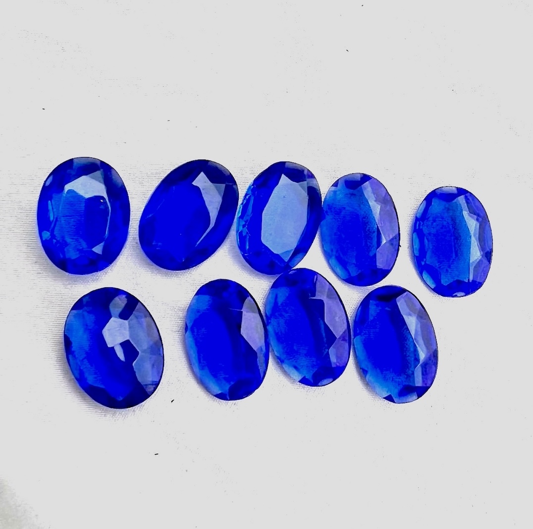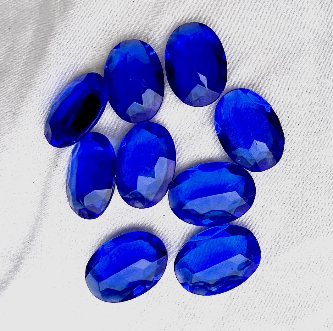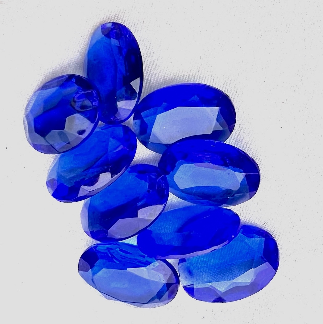 Lovely group of 9 large 25m north to south by 18m east to west by 5-6m deep cobalt blue color FACETED GLASS ovals for jewelry making, pendants, furniture/lamp decoration, repurpose, recycle, upcycle, restore, create, bracelets etc. These are from the 1960s, 1970s and were originally used in oversized jewelry. All are faceted on BOTH sides and quite sparkly. All are still in excellent condition and have a beautiful, deep, rich, cobalt blue glow. Part of an old jewelry manufacturer’s supply from many decades ago.