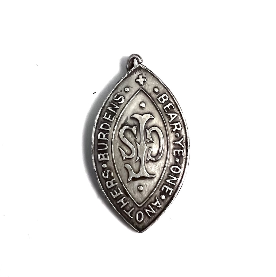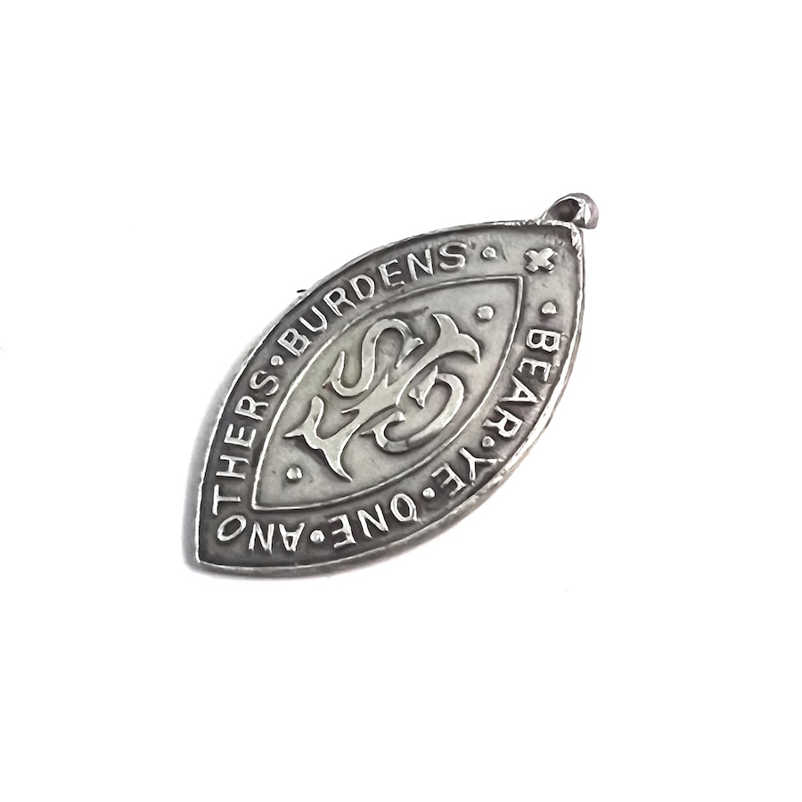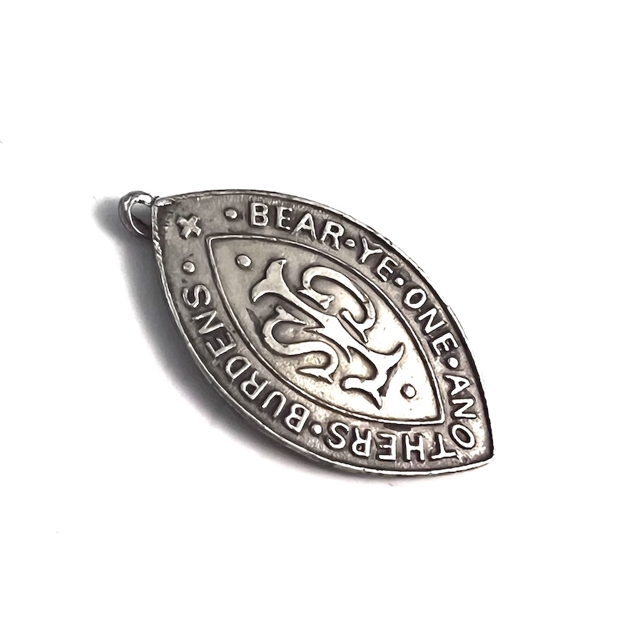 “Bear ye one another’s burdens” is a phrase from Galatians 6:2 (KJV) commonly featured on religious medals, pins, and tokens, often designed to represent Christian charity, support, and fellowship. These items are used as tokens of encouragement or to symbolize the, sometimes difficult, calling to help others in their struggles.