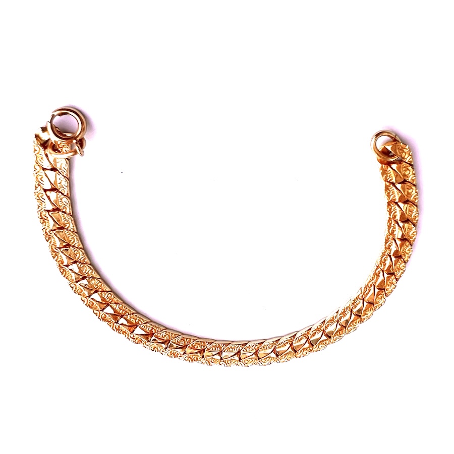 Vintage Fancy Double Sided Flat Heavy Gold Plated Linked 1970s Bracelet