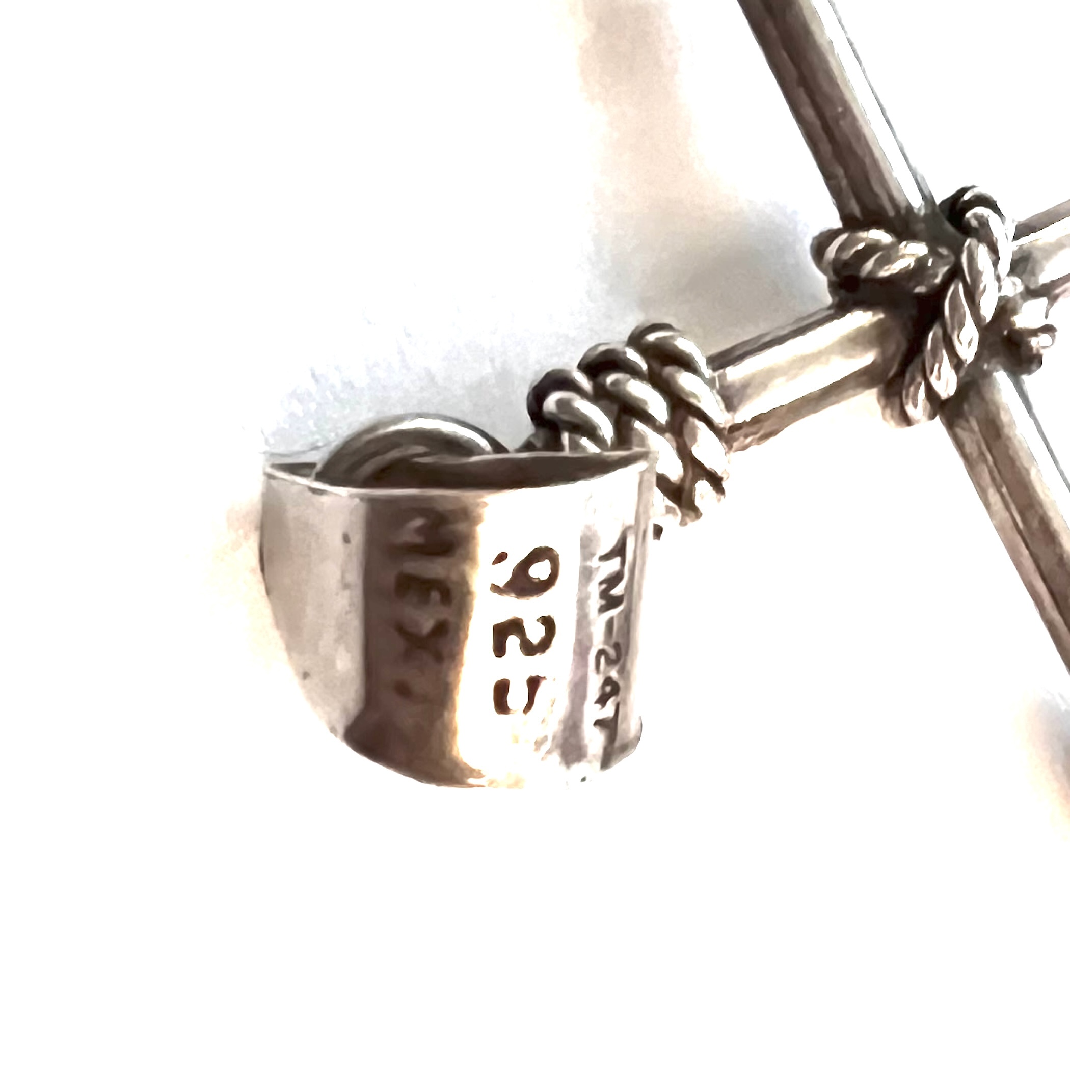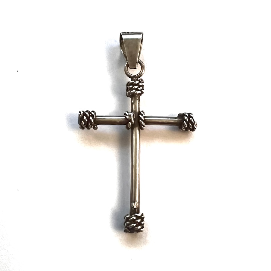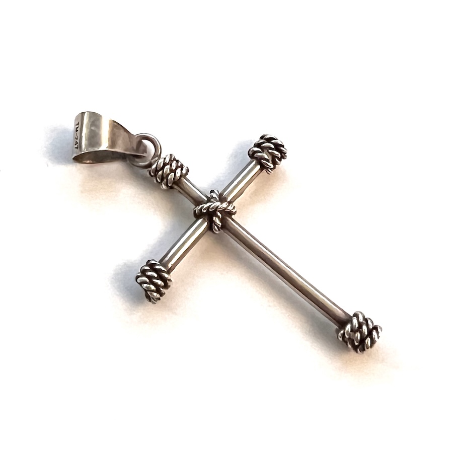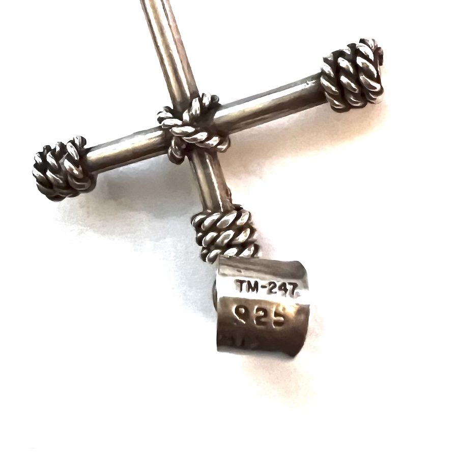 Vintage 1970s 1980s TM-247 925 Mexican Sterling Silver Cross Pendant Wire Wrapped Brutalist Modernis